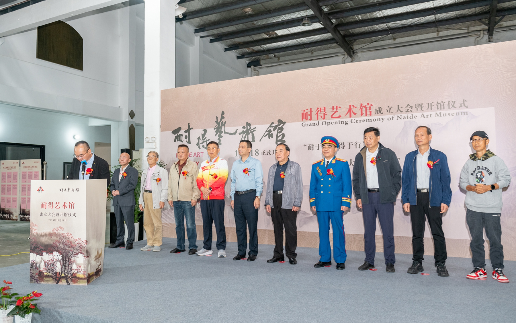开馆仪式当天,芜湖市关工委主任魏道斌,国家一级演员、朱德特型演员、大校陶贤锋,安徽省航运协会会长、湾沚商会会长尹德荣,芜湖市公安局原副局长杨建伟,芜湖市企业联合会湾沚区工作站站长、安徽华星集团董事长奚志华,芜湖市企业联合会湾沚区工作站专家咨询委召集人陶显松,国家一级美术师、中国美术家协会会员、安徽省水粉彩学会副主席、芜湖市美术家协会第五届主席团主席、芜湖书画院专职画家、王大仁美术馆馆长王彪,芜湖市湾沚区诗书画学会会长陈伟以及贺信单位负责人,湾沚区艺术家、企业家等160多人出席开馆仪式。