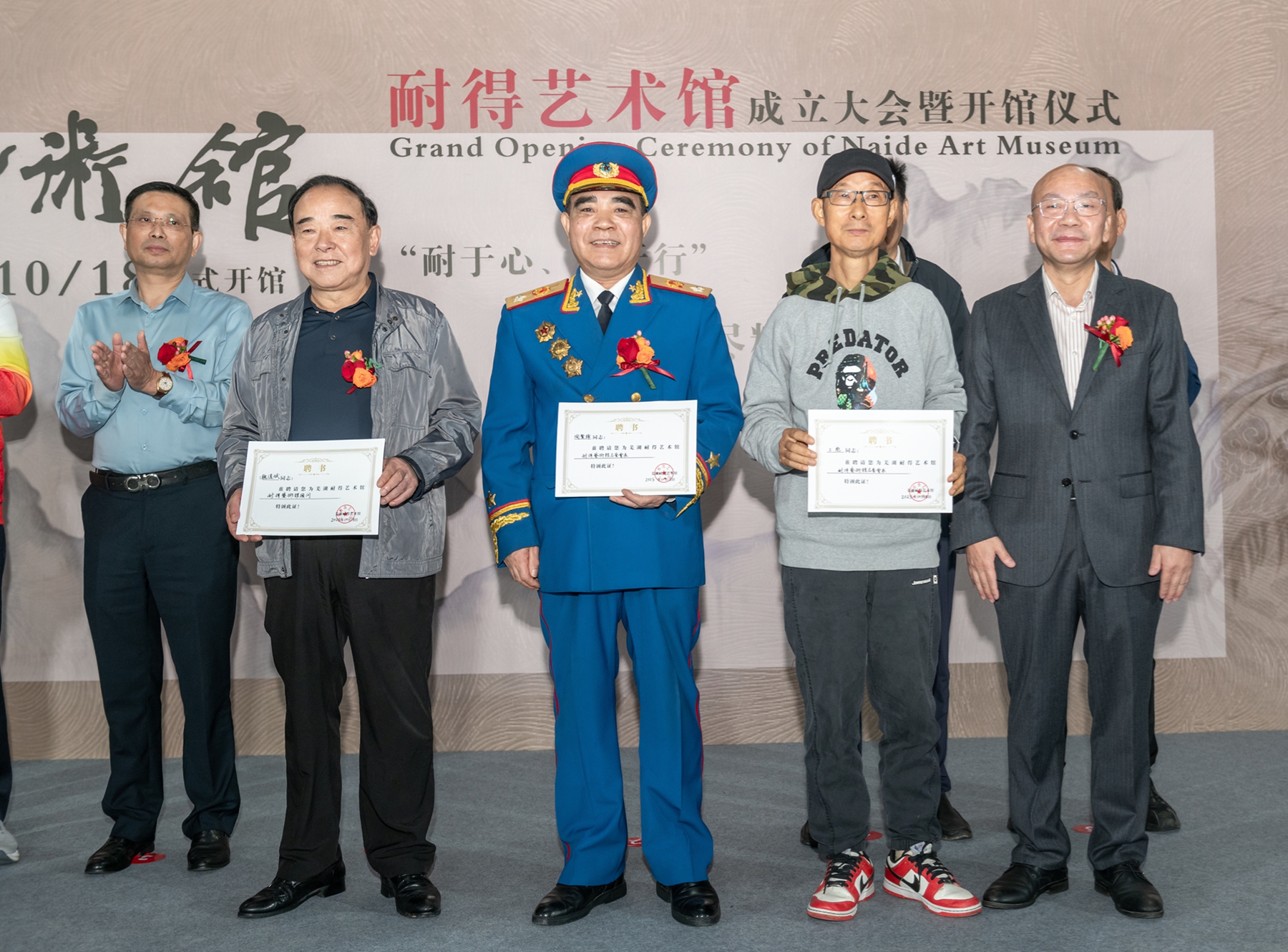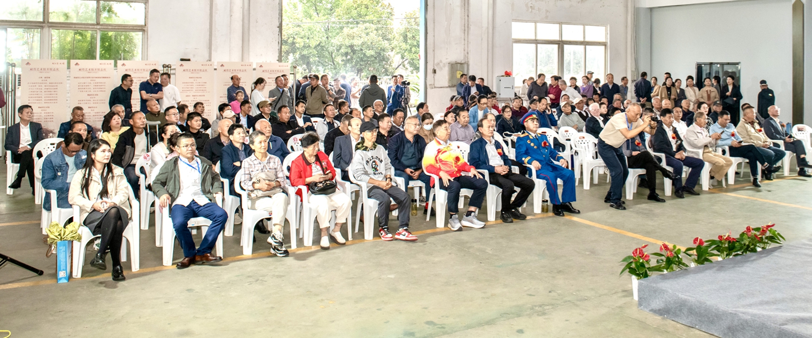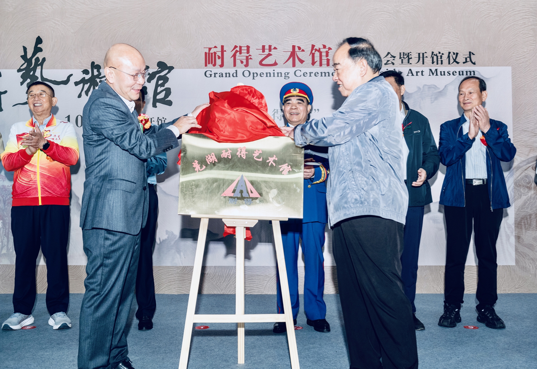 开馆仪式当天,芜湖市关工委主任魏道斌,国家一级演员、朱德特型演员、大校陶贤锋,安徽省航运协会会长、湾沚商会会长尹德荣,芜湖市公安局原副局长杨建伟,芜湖市企业联合会湾沚区工作站站长、安徽华星集团董事长奚志华,芜湖市企业联合会湾沚区工作站专家咨询委召集人陶显松,国家一级美术师、中国美术家协会会员、安徽省水粉彩学会副主席、芜湖市美术家协会第五届主席团主席、芜湖书画院专职画家、王大仁美术馆馆长王彪,芜湖市湾沚区诗书画学会会长陈伟以及贺信单位负责人,湾沚区艺术家、企业家等160多人出席开馆仪式。